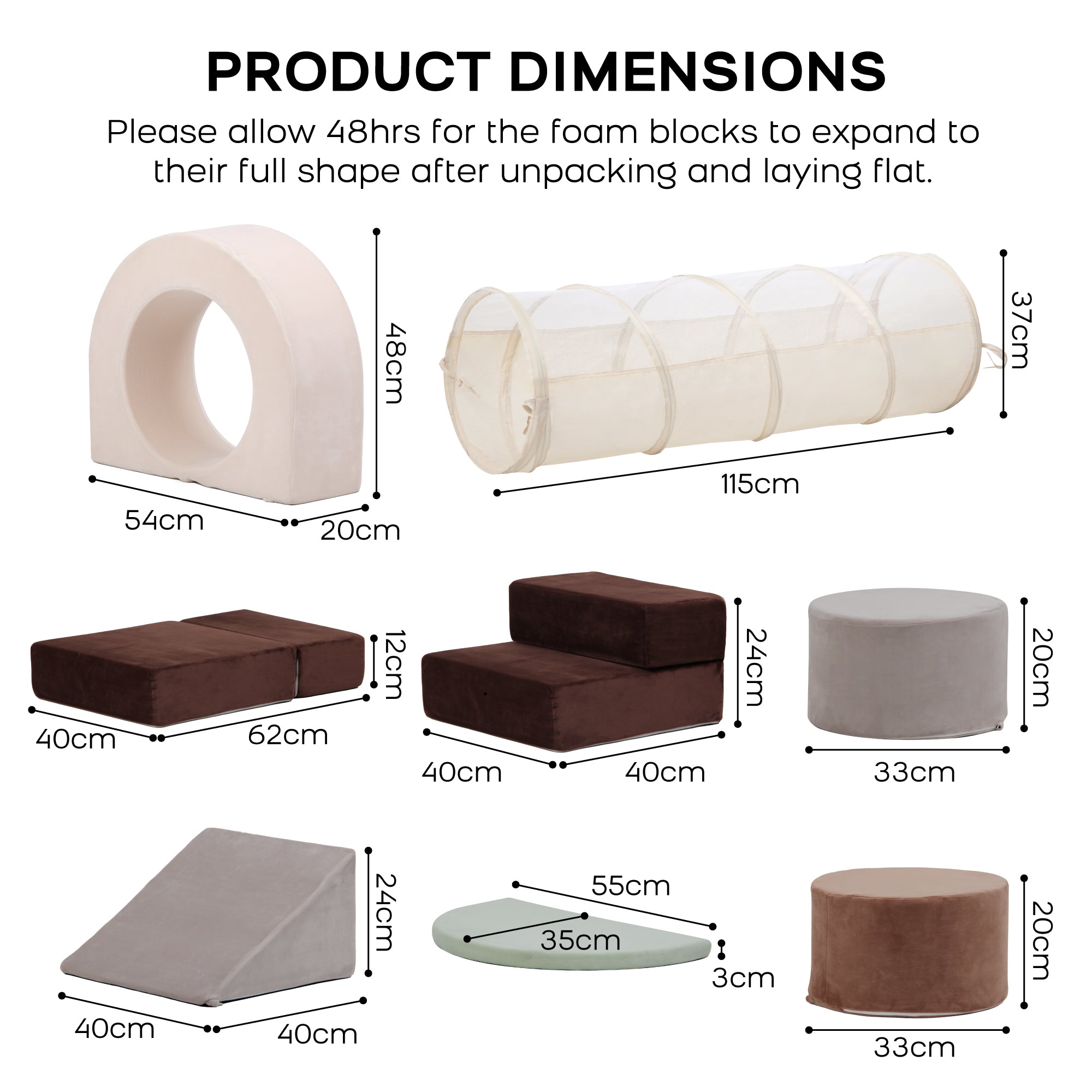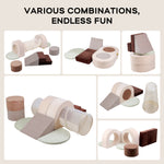 • ENDLESS FUN, MULTIPLE COMBINATIONS: With foam blocks in different shapes—foldable stairs, ramp, cylinder, and mats—children can climb, stack, slide, or simply relax. Transform any room into an indoor playground full of creativity and fun.
