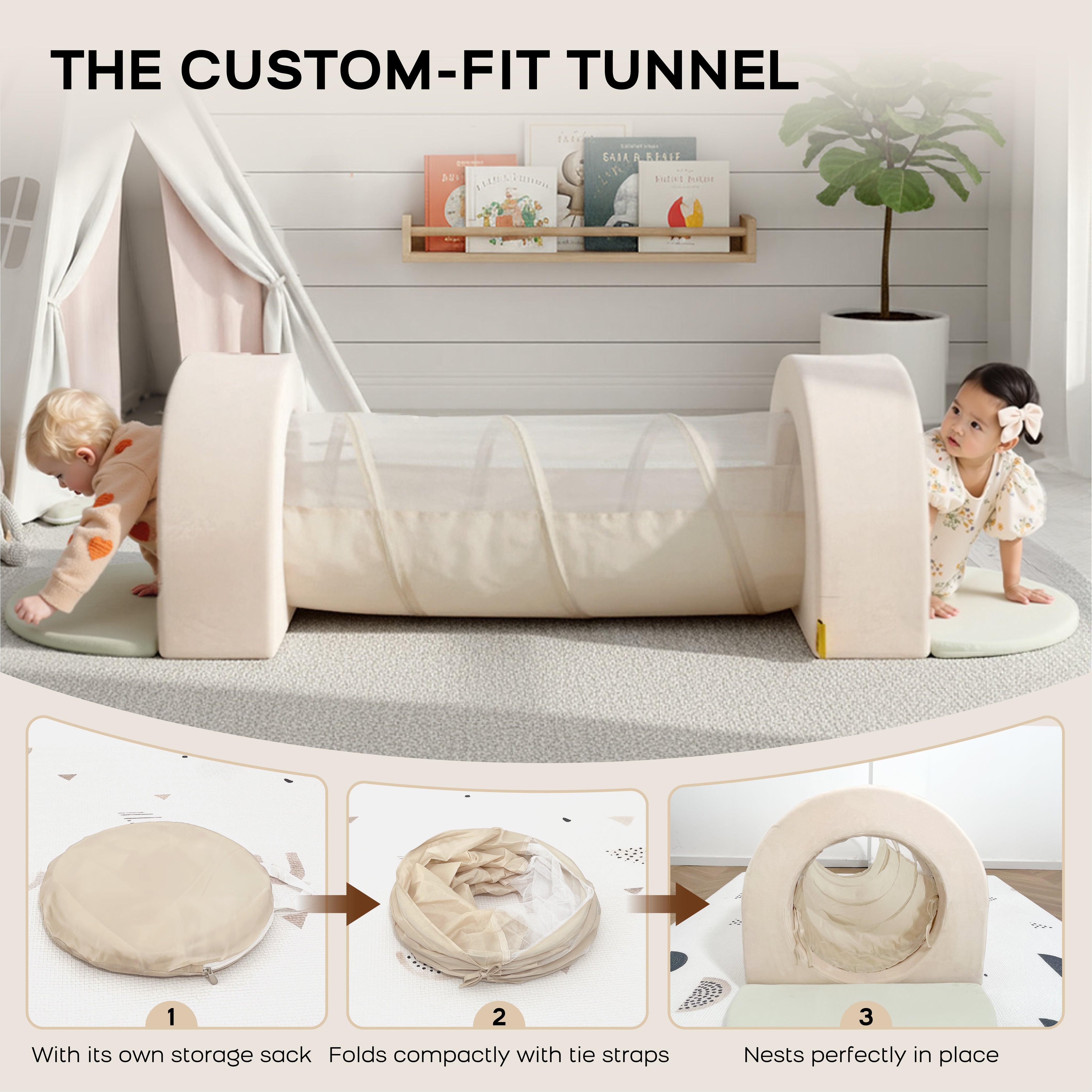 • EXTENDED TUNNEL ADVENTURE: Kids love exploring and crawling! This 8-piece climbing set includes 2 arches plus an extra play tunnel that can be used alone or fixed between the arches to create a larger, longer, and more stable tunnel that won’t roll away.