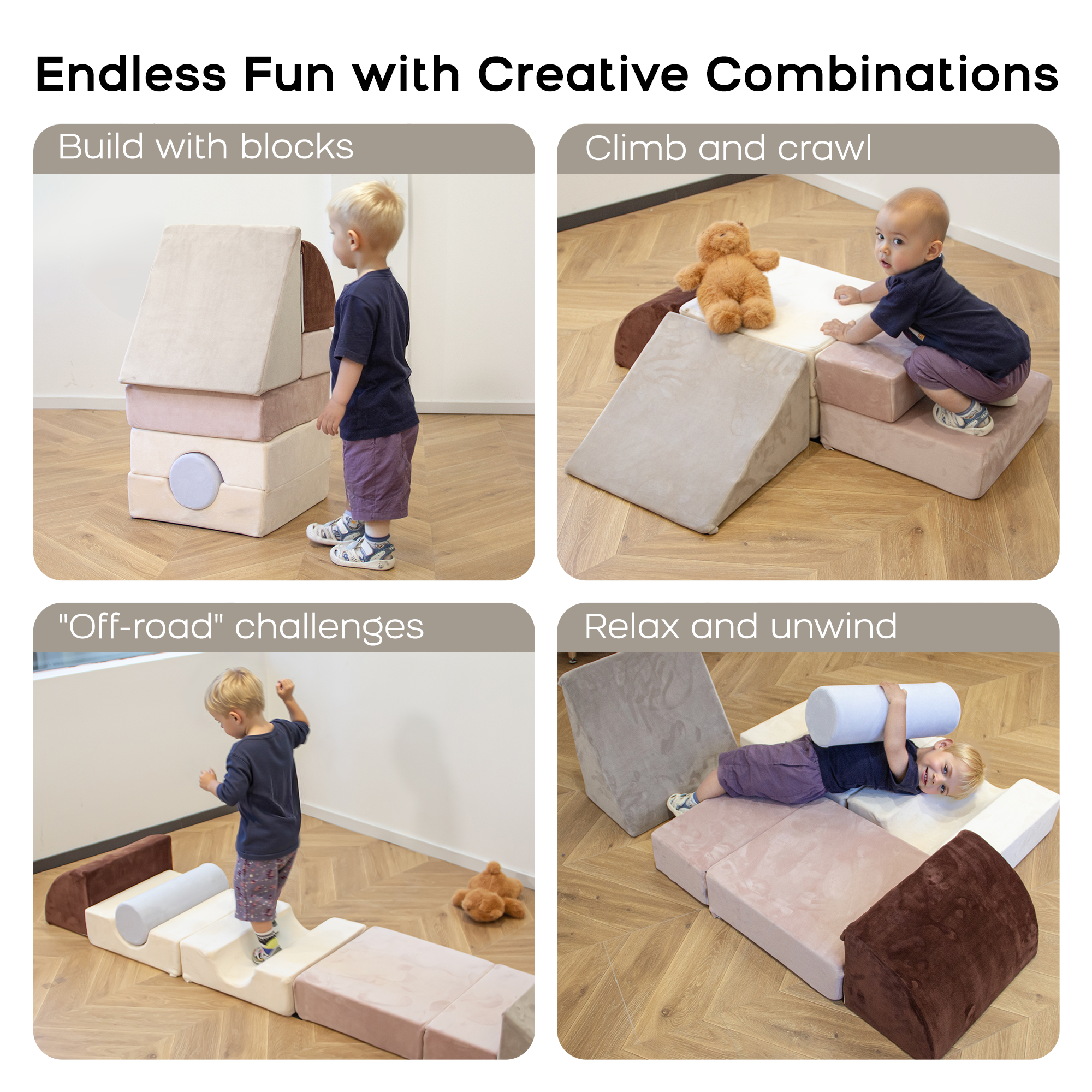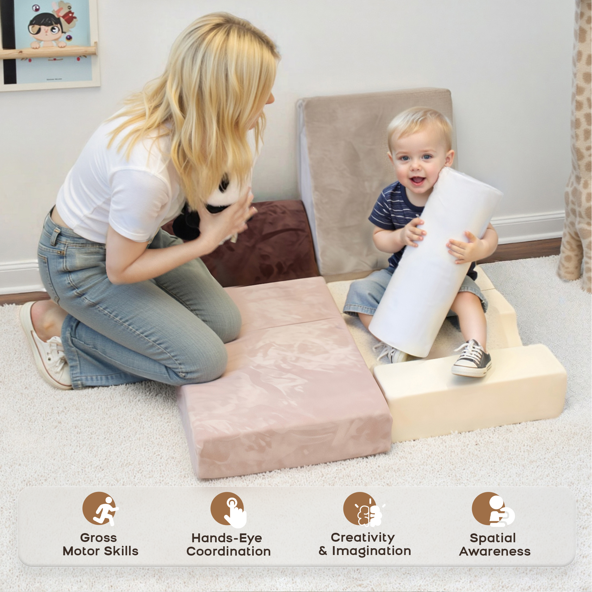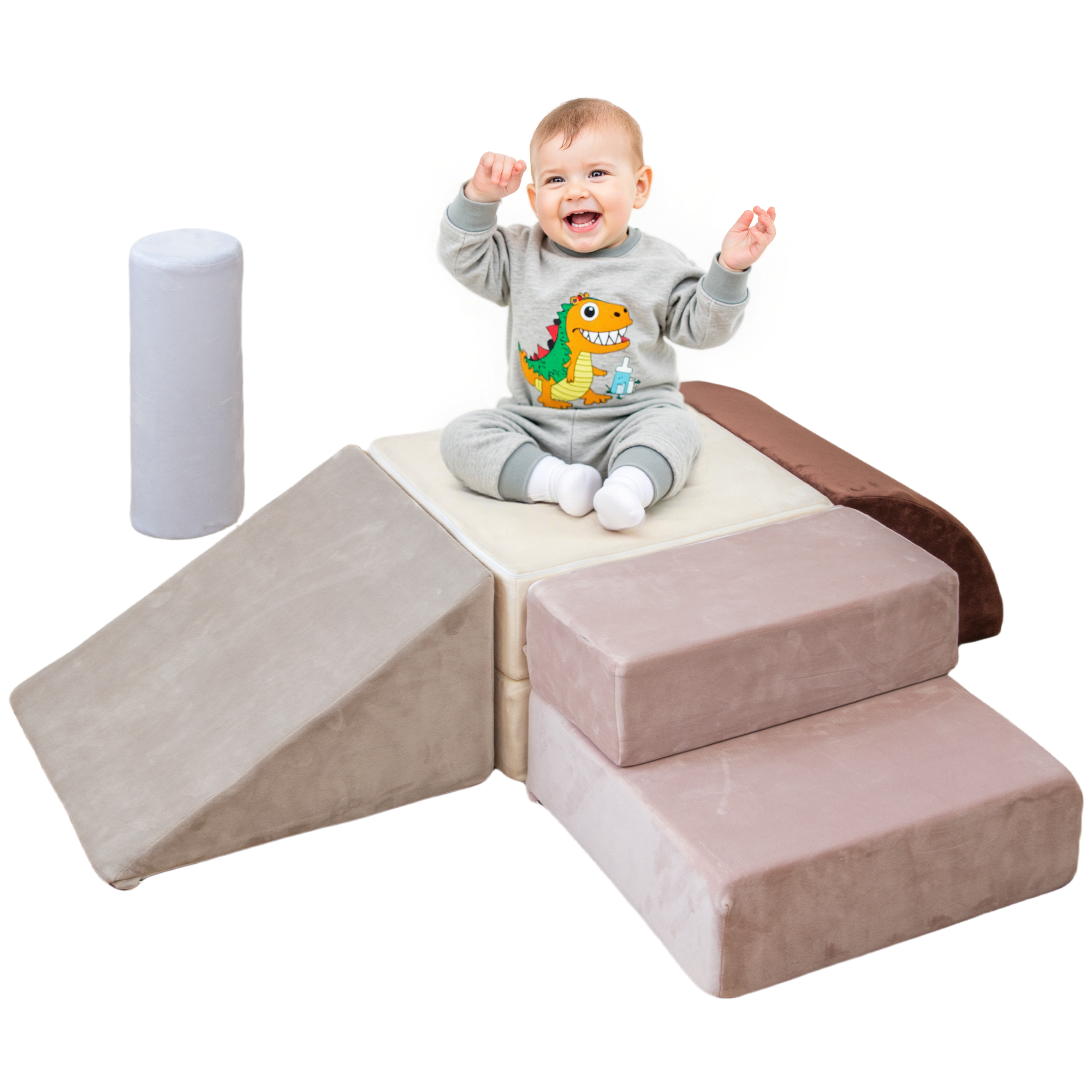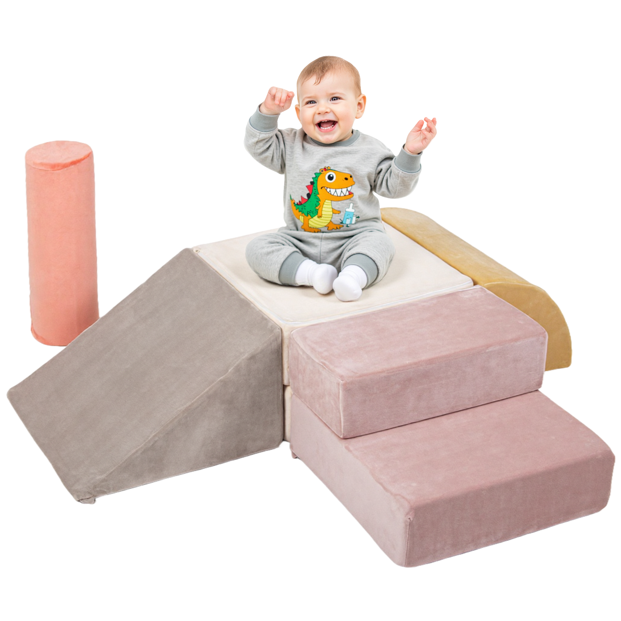 • FUN & VERSATILE CLIMBING SET: This soft play gym includes a foam cylinder, slope block, ramp, step block, and square block—offering endless combinations for climbing, crawling, and imaginative play. Whether it's a mountain to conquer, a bridge to build, or a cozy corner to relax in, this 5pcs set brings active fun and creativity to toddlers.