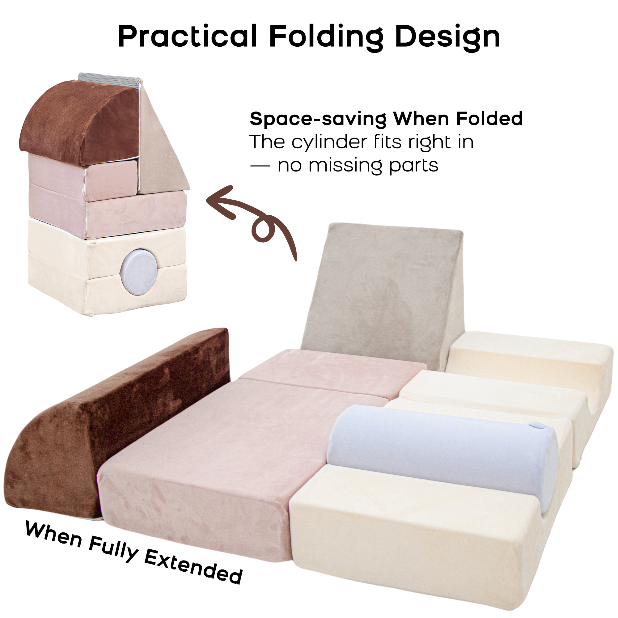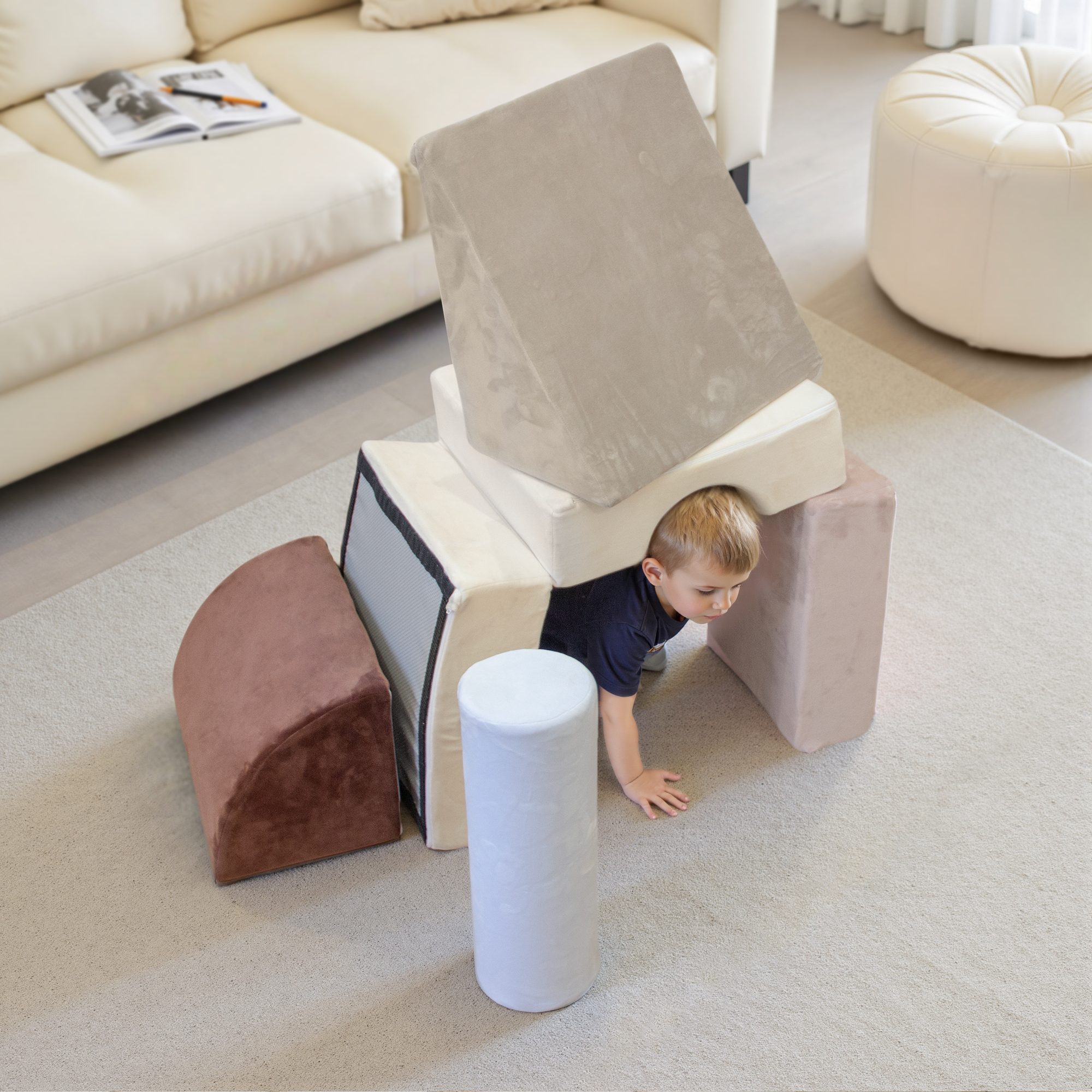 • FOLDABLE & SPACE-SAVING DESIGN: The foldable foam blocks save space while enhancing play possibilities. The cylinder block fits perfectly inside the folded square block—easy to store, no worries about losing pieces. When unfolded, the blocks transform into a large play mat, ideal for baby crawling, "off-road" climbing, or simply lounging.