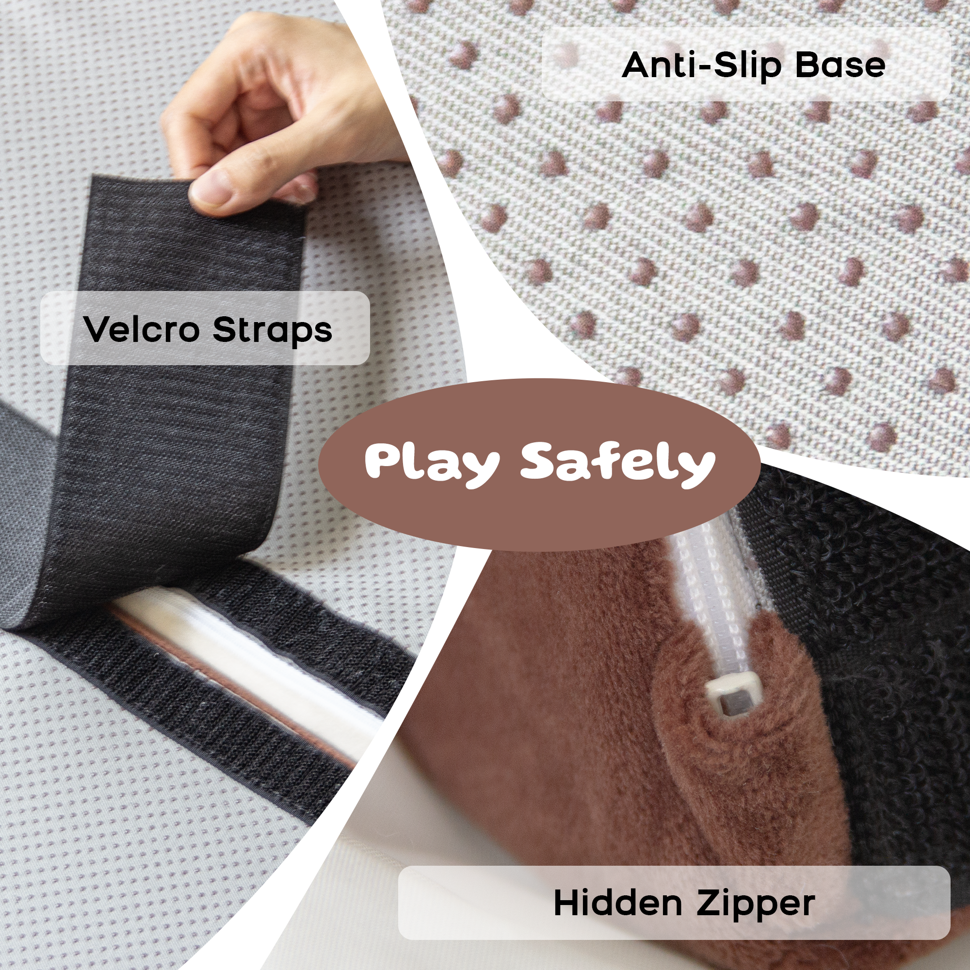 • SAFETY FIRST: Each foam piece features a non-slip bottom and safety velcro straps to keep blocks securely in place. Hidden zippers reduce choking hazards, ensuring a safer environment for babies and toddlers during active play.