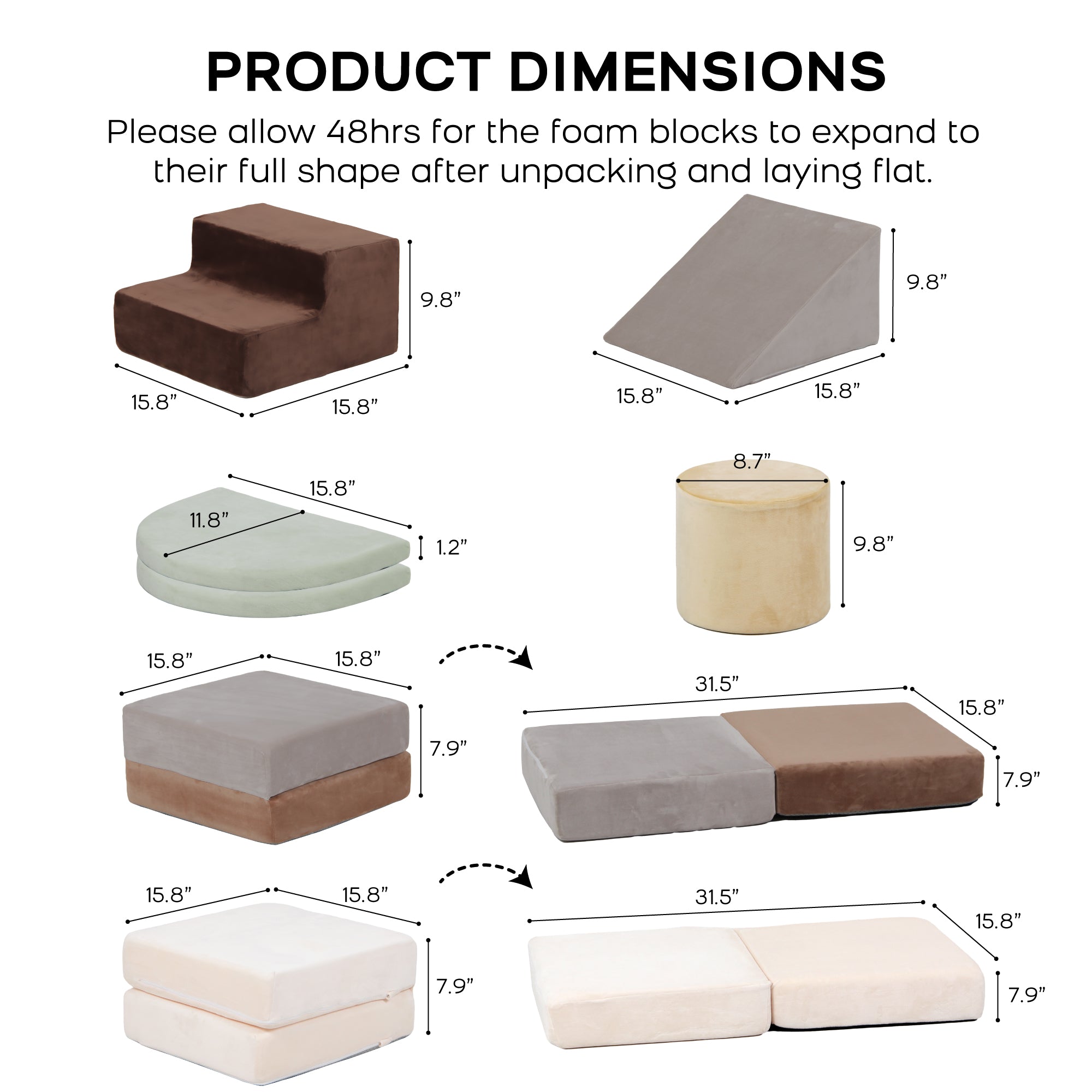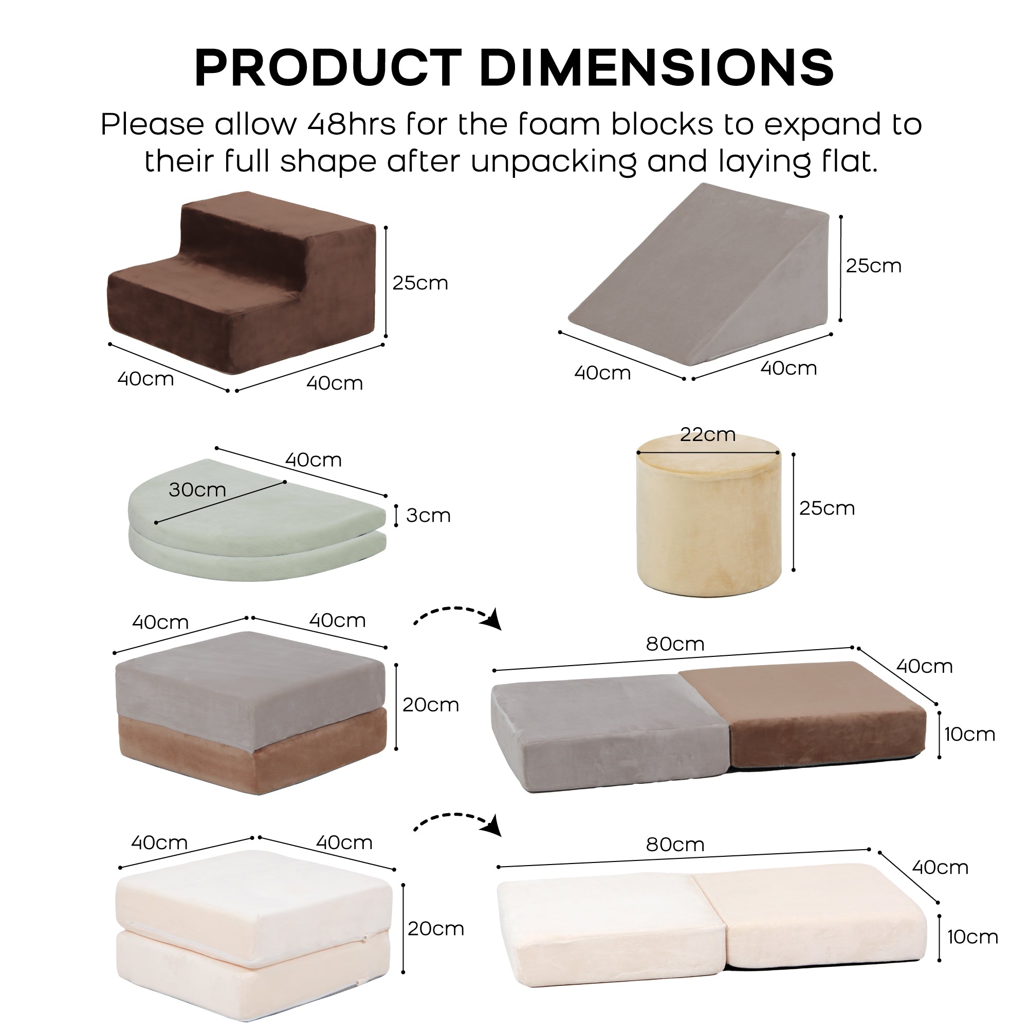 - **These blocks require no assembly and regain their full shape within 48 hours