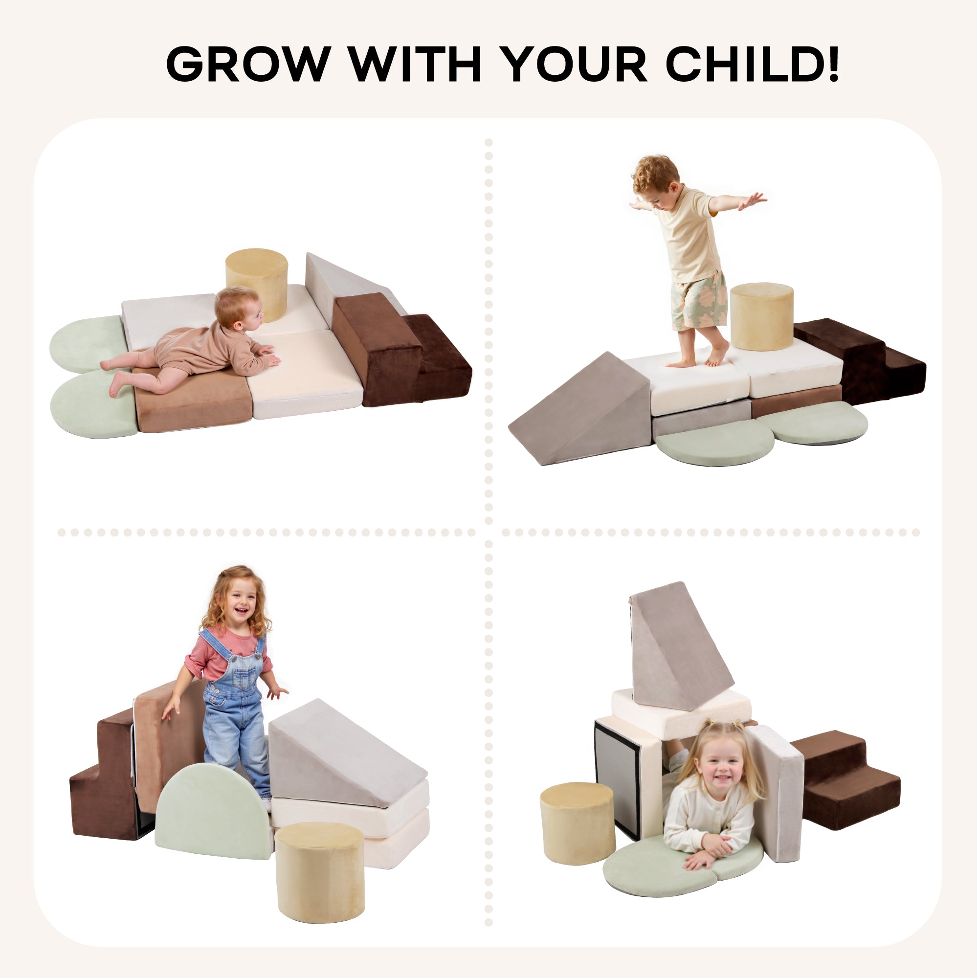 - GROWS WITH YOUR CHILD: These foam blocks are designed to accompany your child through different stages: from helping babies learn to crawl and walk, to giving older children a soft, cozy play couch or creative building options. With endless imaginative play, they foster motor skills, coordination, creativity, and confidence.