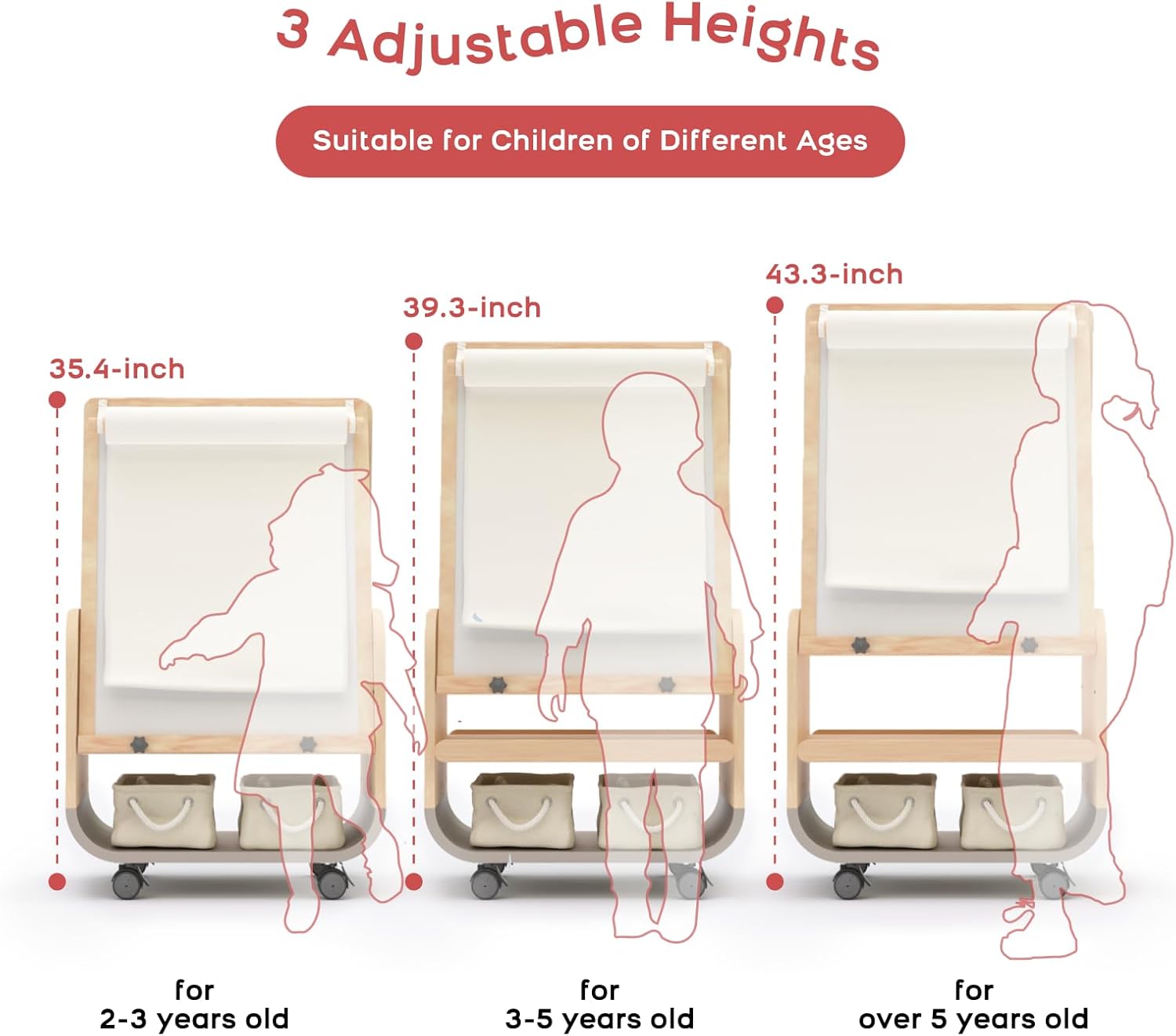 • 📏 Adjustable Height for Growing Artists: Designed to grow with your child, this wooden toddler easel offers three adjustable heights: 35.4", 39.3", and 43.3". Suitable for children aged 3 to 10, it’s an economical choice that adapts to your child's needs.