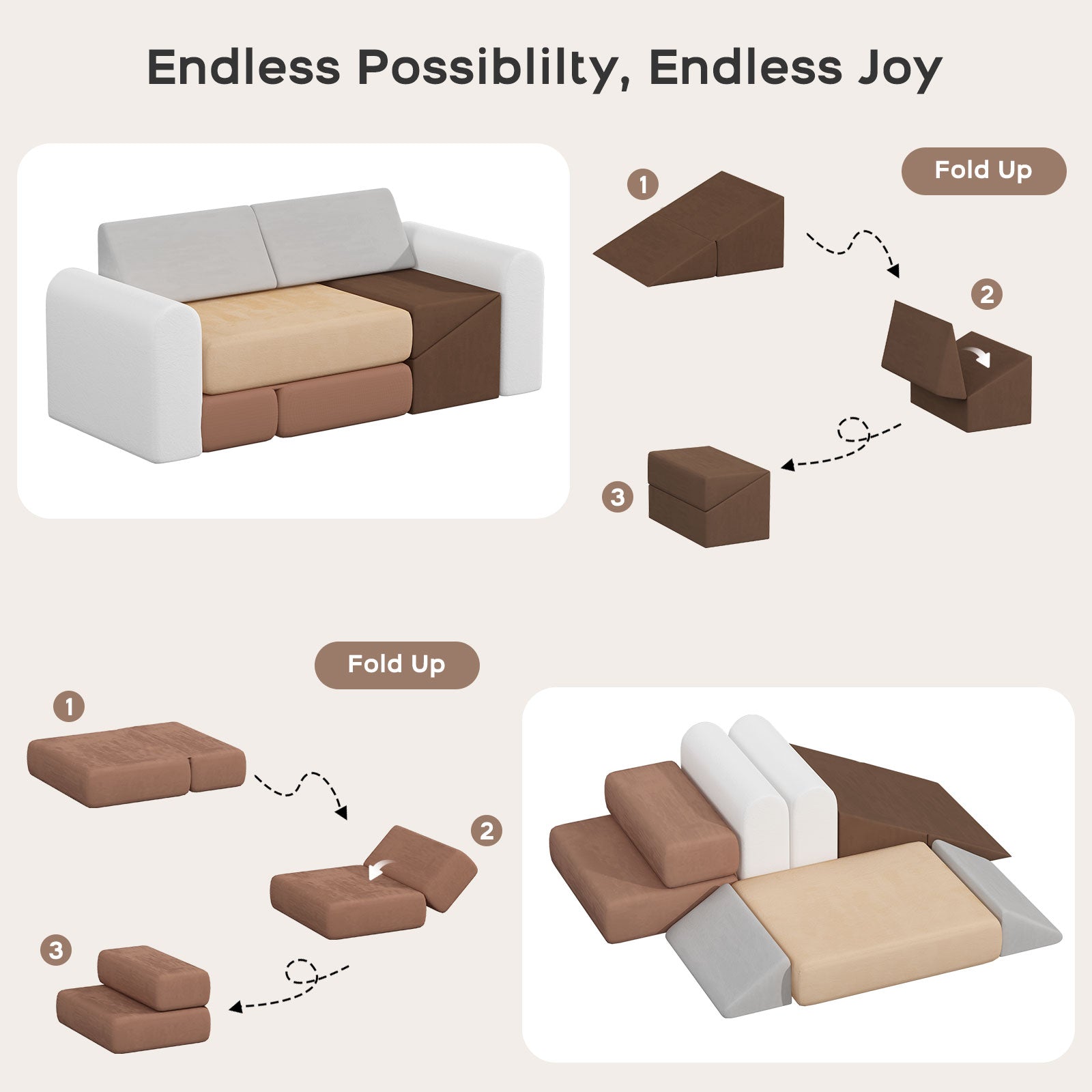 - FUN & VERSATILE PLAY OPTIONS: This set includes 7 foam blocks, 2 of which are foldable and can be combined with others to create a comfortable sofa, or stacked into fun shapes like tunnels and forts. These foam blocks support your child's development through various stages: from helping babies learn to climb and walk, to offering older children a soft, cozy play couch or creative building options. Endless possibilities for imaginative play help develop motor skills, coordination, and courage.
