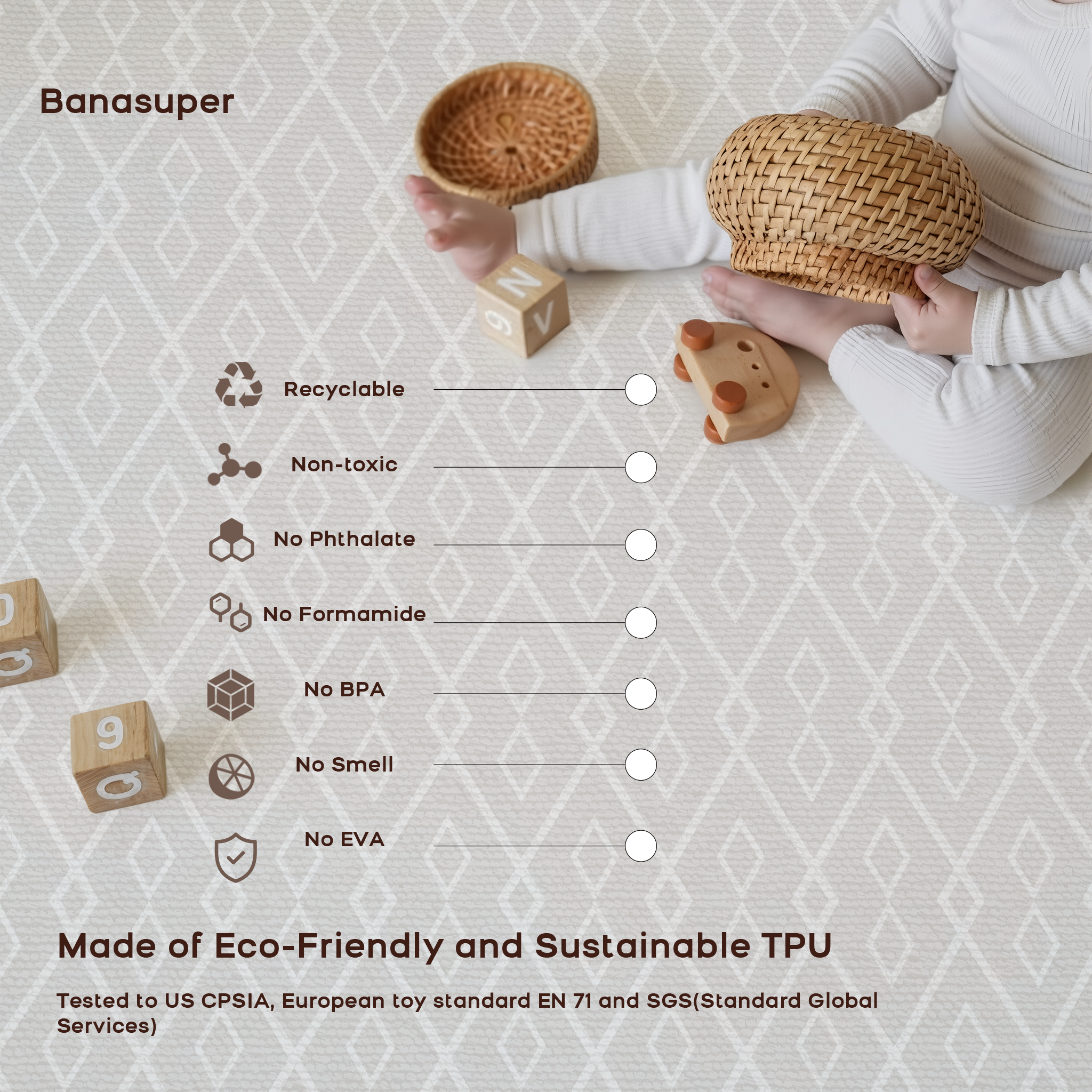 BanaSuper Baby Play mat for Floor, one-Piece Reversible Waterproof, playmat for Toddlers